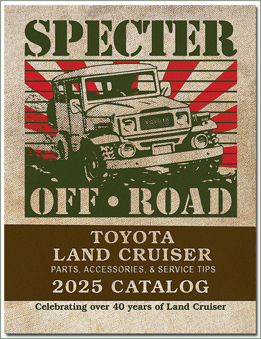 In some cases, you will find part numbers are obvious, in others, not so much. Our part numbering system goes back 40 years to our first printed catalog, evolved when we took Specter Off-Road to the Internet in 1996 and continues to evolve as we add new parts. Back then we supplied part for the FJ40, FJ55 and a few FJ45 pickups. Our catalog was commercially printed and was accompanied by a price list we published bi-annually. For a detailed description, jump to the part number overview...