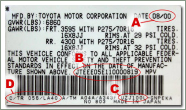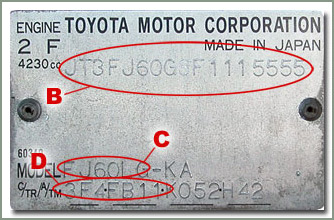 The following information focuses primarily on vehicles originally sold in the USA. Identification tags can still be found on Non-USA models but the location of the tag varies by model. To help identify your vehicle, a visual reference of Land Cruiser body styles can be found on our Model Identification page.