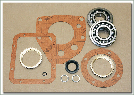 Three Speed Bearing and Gasket Set Fits 1963 to 1974 3 speed transmission. Includes bearings, gaskets and syncro rings. See separate kits for Counter Shaft 058-23-KIT, and Reverse Idler Gear 058-18-U-KIT. On Sale - Everyone gets the Discounted Price on this part. |