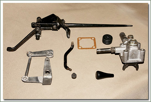 USED Transfer floor shift kit 1958-9/73 3 speed - Kit contains early type shifter components for use with 3 speed transmissions. This kit is a direct replacement for early vacuum shift mechanisms. Order 116-06 shift lever boot separately. On Sale - Everyone gets the Discounted Price on this part. |