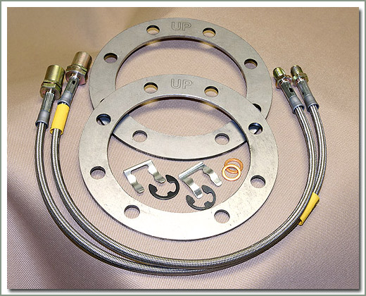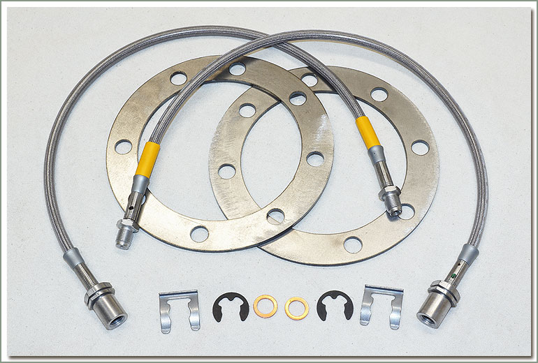 Backing Plate Eliminator Kit comes with 2 Stainless Steel hoses & 2 Shims