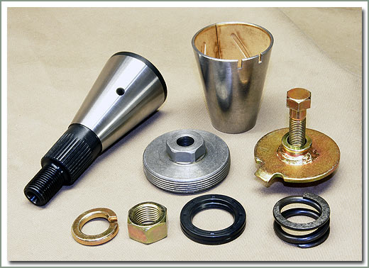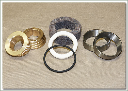 #096-0A - Specter is happy to announce that we can again offer parts to rebuild the early type center arm assembly. The Toyota kit has been discontinued for some time so no parts have been available to rebuild them. This new kit contains just the parts required for a rebuild, the bushings, the races, the felt dust seals and the o-ring. This kit requires that you reuse the center shaft, brackets, hardware and both woodruff keys.