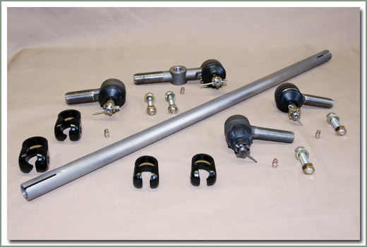 If you already have, or are planning to add Saginaw Power Steering to your left hand drive 40 series vehicle, we have the tie rod end kit for you. This kit includes 3 stock sized and 1 Saginaw tie rod ends, conversion relay rod, grease zerks, cotter pins, tie rod end clamps, bolts and nuts.
