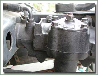 For you left hand drive 40 and 45 Series owners who are looking to install power steering in your vehicle, Specter now offers this power steering conversion kits. This kit incorporates a 2 inch slip yoke on the new steering shaft to compensate for frame flex. The Saginaw Power Steering Conversions use only four tie rod ends, eliminating several components and making the steering system more direct. These kits eliminate the factory steering box, the drag link rod and ends, as well as the center arm assembly. These kits require cutting, welding and some fabrication. The kits require a high degree of skill from the installer. We recommend that you read and understand the installation procedure before you attempt this conversion (please call for installation manual). The steering system of your vehicle is a critical control component, if the steering fails severe damage and possible injury can be the result. The Saginaw Power Steering Conversion Kit comes with the steering box mounting plate, frame rail weld in gussets, spud shaft for steering box, steering shaft with u-joints, early and late style steering column mounts, tie rod end and correct length tie rod. This will allow the modification of the steering column and the front driver side frame rail for the installation of the steering box.
