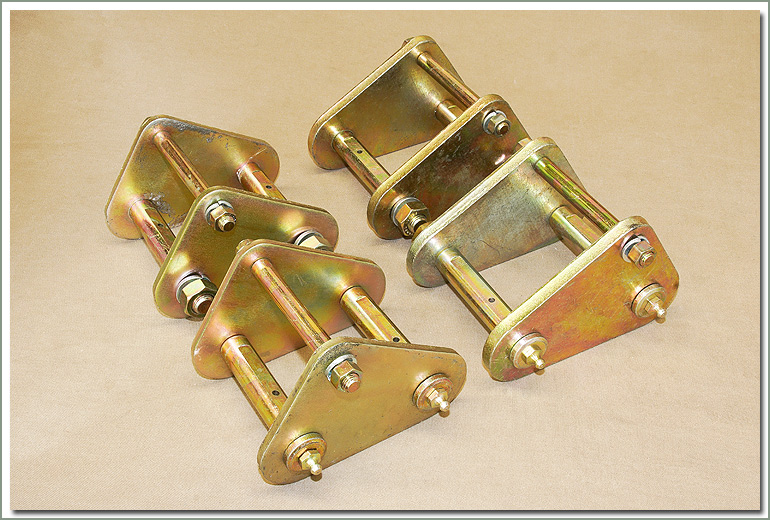 40 Series Stock Height Tri Shackle Kit Fits 1958-7/80 FJ40 & BJ40 front and rear - Plated finish - Grease-able bolts - Stock bolt diameter - 4 piece set - Uses stock size bushings when used with stock leaf springs, sold separately, see page 289 On Sale - Everyone gets the Discounted Price on this part. |