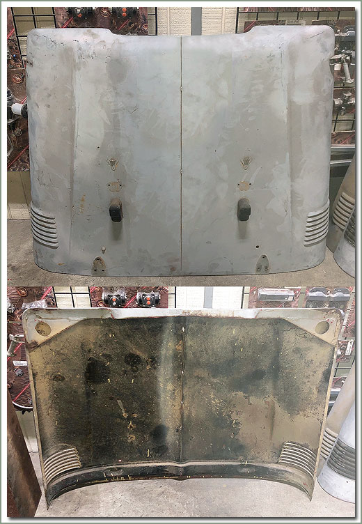USED 40 Series Hood Fits 1958-9/71 FJ40 - Two piece early type hood in better than average condition for a Used Hood. No cracks in the front corners. This hood has the seam between the hood halfs filled in. Replace your damaged Hood today. This part is discounted $148.00 On Sale - Everyone gets the Discounted Price on this part. PLEASE ALLOW 24 TO 72 HOURS TO PULL AND INSPECT ALL USED PARTS BEFORE SHIPMENT (an Additional Handling Charge of 50.00 is already included in price) |