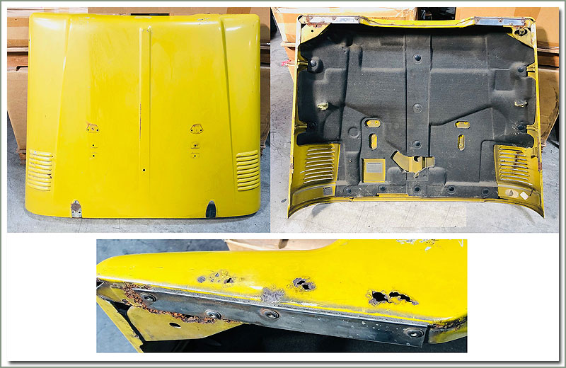 USED Hood Fits 1/75-1984 FJ4#. Hood has rust holes in the right front face and below both front corners. Application is Non US with insulator and scuff plates under front edge not used on U.S. trucks. This part is discounted $59.00 On Sale - Everyone gets the Discounted Price on this part. (an Additional Handling Charge of 50.00 is already included in price) |