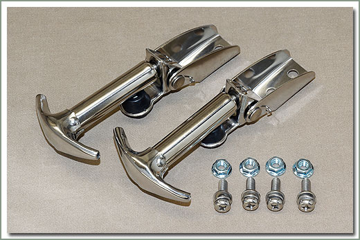 PAIR of STAINLESS STEEL WINDSHIELD HOOKS WITH HARDWARE Fits all 40 Series - Does both sides -Comes with 2 Stainless steel windshield hooks, 4 stainless mounting screws and nuts. Does both sides. On Sale - Everyone gets the Discounted Price on this part. |