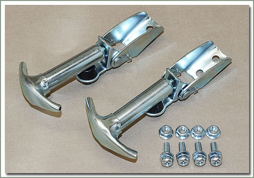 PAIR of ZINC PLATED STEEL WINDSHIELD HOOKS WITH HARDWARE Fits all 40 Series - Does both sides -Comes with 2 zinc plated steel windshield hooks, 4 zinc plated mounting screws and nuts. Paint-able. On Sale - Everyone gets the Discounted Price on this part. |
