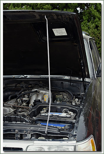 HOOD SUPPORT ROD KIT Fits 1/90 to 1/98 80 Series Land Cruisers - If your 80 Series has old weak hood support struts, this is an alternative way to hold your hood up with no droop - kit comes with a used hood rod and new rod clip and grommet. On Sale - Everyone gets the Discounted Price on this part. |