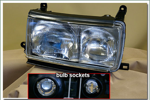 80 RHD Right (driver) NonUSA Headlamp Assembly Fits 1/90-1/95 Non-USA 80 Series - This assembly is designed for right hand drive vehicles. Does not accept USA bulb assemblies, see photograph. On Sale - Everyone gets the Discounted Price on this part. |