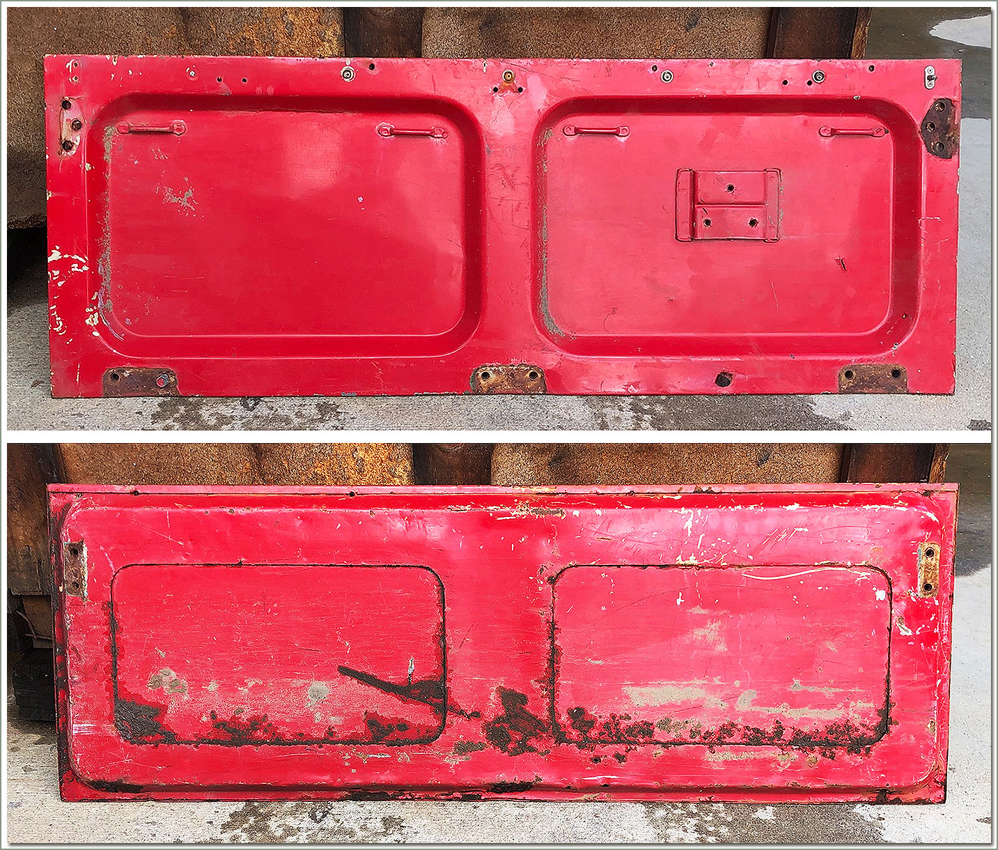 USED Drop Down Tailgate Fits 1958-12/74 FJ40 will also fit 1961-1967 FJ45 short bed pickups. Very difficult to find in any usable condition. Has some surface rust and does not include any of the latches or hinges. On Sale - Everyone gets the Discounted Price on this part. (an Additional Handling Charge of 30.00 is already included in price) |