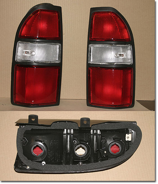 Pair Rear Tail Lamps Assemblies, Aftermarket Fits 90 Series Prado Land Cruisers. Match your old lens to photo. Lens assemblies only - No bulbs or connectors. On Sale - Everyone gets the Discounted Price on this part. |