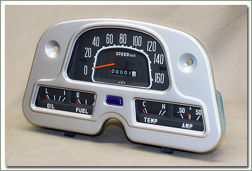 Reproduction Kilometer Instrument Cluster Fits 1/79 to 1984 12 volt vehicles - Require clip on type speedometer cable. Reads in kilometers and has 50 Amp gauge. On Sale - Everyone gets the Discounted Price on this part. |