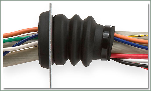 FIREWALL BOOT Universal Fit Firewall Boot for 1 1/4" diameter hole - Trim to fit - 3 different wire sizes - Does not fit stock wire harness hole. On Sale - Everyone gets the Discounted Price on this part. |