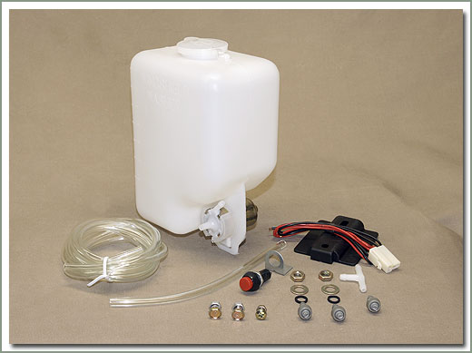 This kit is sold as an alternative replacement for the stock windshield washer assembly. Kit comes complete with motor, washer bottle, nozzle, mounting brackets, switch, hose & fittings. Easy to install. |