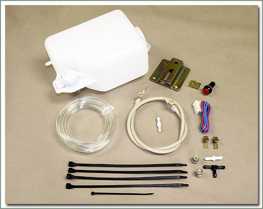 This kit is sold as an alternative replacement for the stock windshield washer assembly. Kit comes complete with motor, washer bottle, nozzle, mounting brackets, switch, hose and fittings. Easy to install. |
