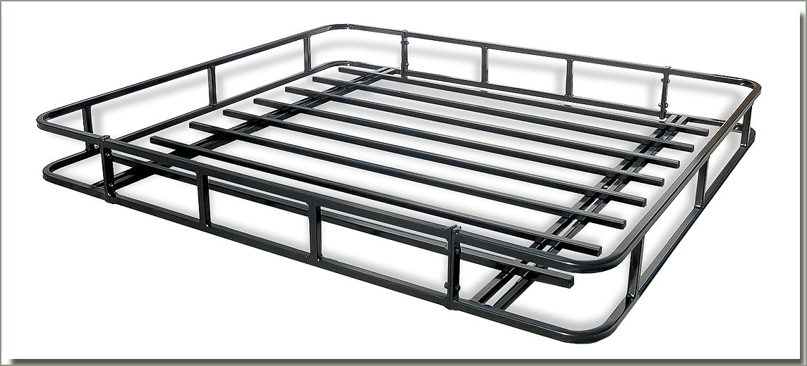 Wilderness Heavy Duty Roof Racks are manufactured from 3/4 inch heavy wall square steel tubing. Racks come complete with all mounting hardware, easy to follow instructions and require only basic hand tools for assembly. Each rack is custom designed to specifically fit your vehicle. No more wondering if a universal rack will fit your vehicle. Black powder coated for a durable, long lasting, and attractive finish. All hardware is grade 5 and zinc plated for extra protection. Racks are available with 4 inch or 6 inch high sides. Heavy duty double rack end cross bar system provides support for the optional floor kits. All bolt together design for simple installation and UPSABLE oversized shipment. Wilderness racks are made for the ultimate off road vehicle! |