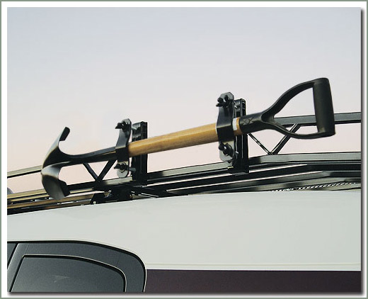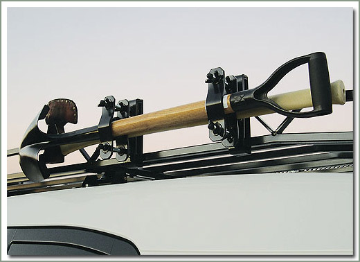 Dual Axe and Shovel Holder Fits 4 inch & 6 inch tall roof rack sides - Semi gloss black powder coated finish - Comes with installation hardware On Sale - Everyone gets the Discounted Price on this part. |