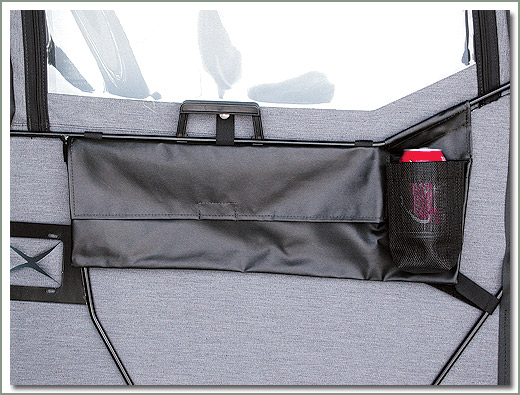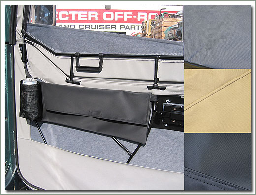 SOR Grey Softop Door Pockets with Beverage Holder Grey Tuff Duck Vinyl - Has a built in mesh cup holder - Sold in pairs On Sale - Everyone gets the Discounted Price on this part. |