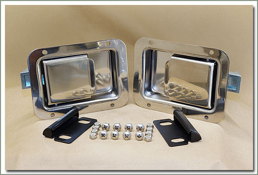 PAIR STAINLESS STEEL PADDLE HANDLES Fits half doors - Fits #273-15 Denim Half Doors & #273-220 Aluminum Half Doors - Does NOT fit #268-840 Fastrac Two Piece Soft Doors, #269-120 Bestop Two Piece Doors or Full Soft top Doors because they do not have an inner operating handle - Comes with left and right paddle handles, stainless hardware, and strikers (striker hardware sold separately) - sold in a pair with screws. On Sale - Everyone gets the Discounted Price on this part. |