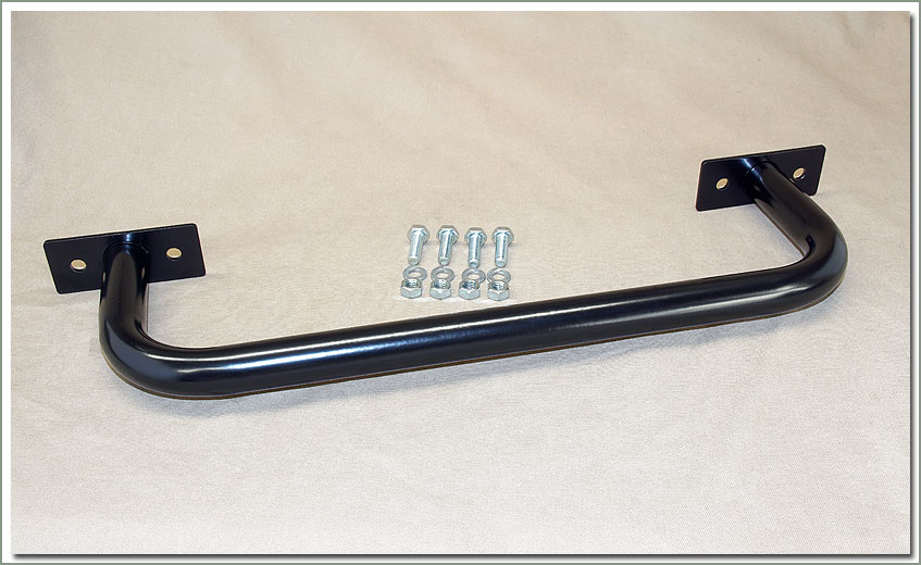 SOR Grab Bar bolts to the 40 and 45 Series factory dash board. It provides a convenient and secure handle for your passenger. This grab bar is designed to clear the glove box. Requires minor drilling for installation. Mounting hardware included. Available in black powder coated finish. Fits all 1968-1984 40 Series. Complete your installation with a Grab Bar Pad from SOR. |