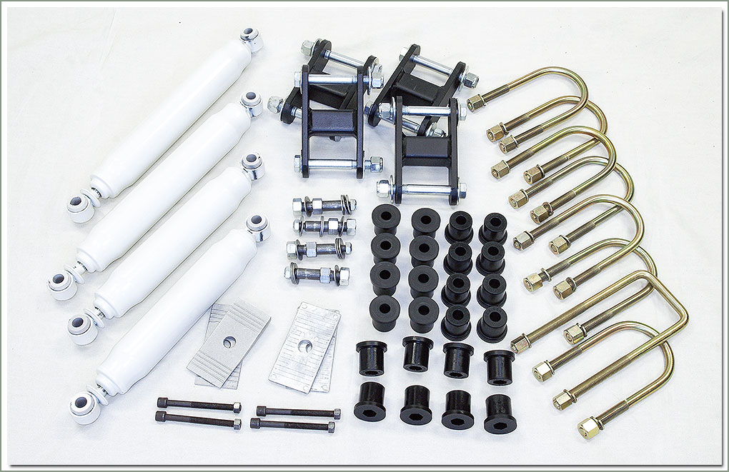 40 Series 2 Inch SOR Lift Kit Fits 1/75-7/80 FJ40 & BJ40 - 2 inches of lift over stock height - Comes with S-O-R Heavy Duty Leaf Springs (qty 4), Explorer Pro-Comp Extended Shocks (qty 4), Anti-Inversion Zinc Plated Tri-Shackles (qty 4), Graphite Impregnated Poly Bushings (qty 24), and U-Bolt with washer & nut (qty 8)-Does NOT come with shock boots, see page 286. Cannot be shipped Parcel Post. (Discontinued - Not available at this time) (an Additional Handling Charge of 80.00 is already included in price) |