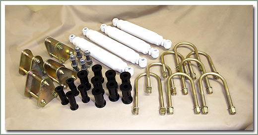 40 Series 4 Inch SOR Lift Kit Fits 1/75-7/80 FJ40 & BJ40 - 4 inches of lift over stock height - Comes with SOR Heavy Duty Leaf Springs (qty 4), Explorer Pro-Comp Extended Shocks (qty 4), SOR Pit Bull Shackles (qty 4), Graphite Impregnated Poly Bushings (qty 24), U-Bolts with washers & nuts (qty 8), 2.5 degree Spring Shims (qty 2), 4.0 degree Spring Shims (qty 2), and Leaf Spring Centering Pins (qty 4)-Does NOT come with shock boots, see page 286.Cannot be shipped Parcel Post. (Discontinued - Not available at this time) (an Additional Handling Charge of 80.00 is already included in price) |