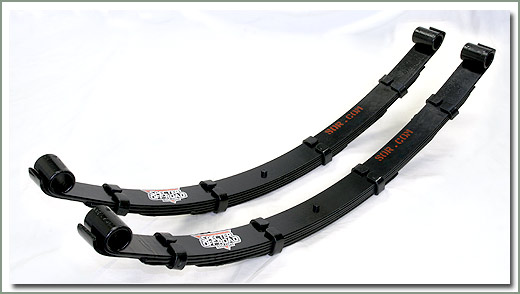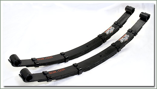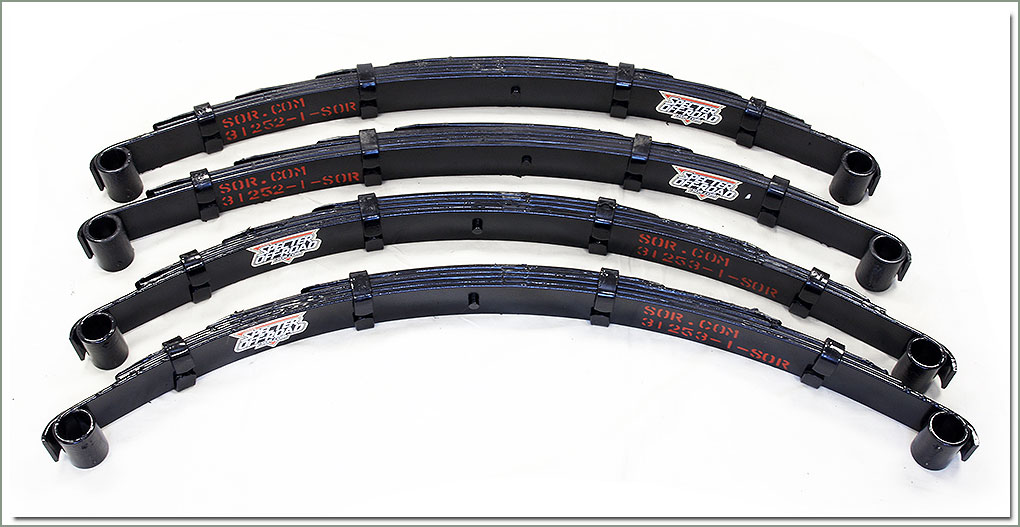 4 SOR Heavy Duty Leaf Springs - These multi tapered leaf springs are manufactured using the highest quality 5160H alloy spring steel. SOR's Front Heavy Duty Leaf Springs have six multi tapered leafs per stack. The Rear Heavy Duty Leaf Springs have five multi tapered leafs per stack to provide a soft, flexible suspension, built to exacting tolerances.