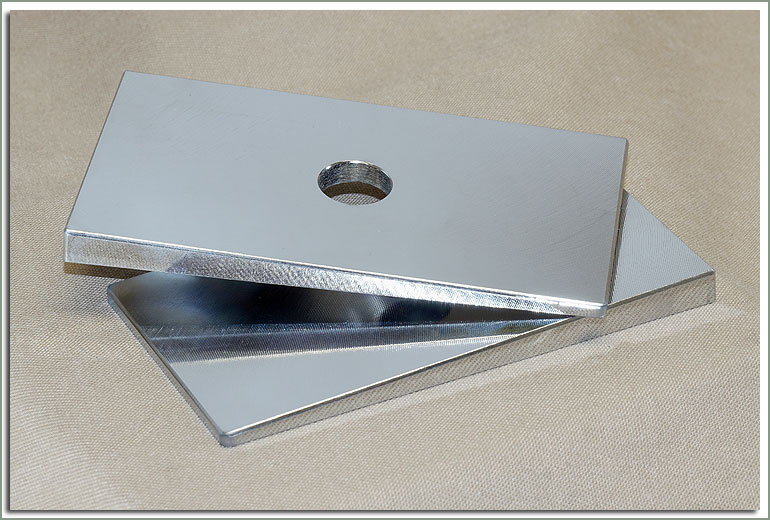 When a vehicle is lifted using an extended shackles, the steering caster angle changes from the stock -1 deg. angle. This creates undue wear on steering components (Knuckle Bearings, Tie Rod Ends, Steering Box). You may also notice your vehicle wander or follow grooves in the road (under inflated tires and other worn steering components will also cause wandering). This problem can be corrected by using Caster Spring Shims. In vehicles with V-8 and or automatic transmission conversions that require the rear drive shaft to be shortened, Caster Spring Shims can help relieve stress on U-joints by rotating the rear pumpkin up. Sold in pairs. If your suspension modification requires the use of spring shims, be sure to purchase leaf centering pins with extended heads to compensate for the additional space added between the spring and spring perch on the axle housing. See part number #287-36. Caster Spring Shims rotate the axle back to a stock tolerance: