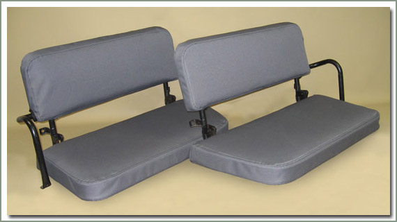 40 Series Rear SOR Tuff Duck Slip Covers-Grey Tuff Duck fabric Fits 9/71-9/73 FJ40 rear jump seats-4 piece set (2 bottom seat covers & 2 back seat covers for the rear jump seats) On Sale - Everyone gets the Discounted Price on this part. Special Order - NO Return |