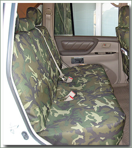 100 Series Mid Passenger SOR Tuff Duck Slip Covers Fits 1/98-2007 100 Series mid passenger bench seats - Woodland Camo Tuff Duck fabric - Includes headrest covers - 5 piece set (1 left seat cover, 1 right seat cover & 3 headrest covers for the mid passenger bench seats) On Sale - Everyone gets the Discounted Price on this part. |