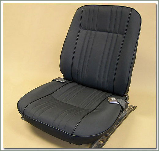 40 SOR Front Deluxe Vinyl Seat Cover Kit (Dark Charcoal Gray Marine vinyl) Fits 1973-1978 FJ40 & BJ40 front bucket seats - Contoured to OEM dimensions - Sewn with durable nylon thread, top stitched with contrasting welted seams - Kit includes hog rings, 2 bottom seat covers, 2 back seat covers, tension wires and 2 seat bottom SOR high density bottom molded foams. Matching headrest covers are sold separately, see #310-73D-H On Sale - Everyone gets the Discounted Price on this part. (an Additional Handling Charge of 20.00 is already included in price) |
