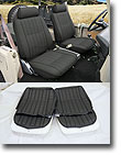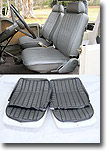 SOR can now offer you reproduction seat upholstery sets made of the same Haartz material the softops are made of. This material is a vinyl coated canvas with a tough denim lining, it is completely waterproof and extremely durable. These upholstery sets are sewn to factory patterns and OEM dimensions. Front bucket seat covers include two bottom covers and two back covers, hog rings, and installation instruction. Matching headrest covers are sold separately. Available in Denim material in Black (BD) or Gray (GD). Need an instruction sheet? Click here |