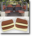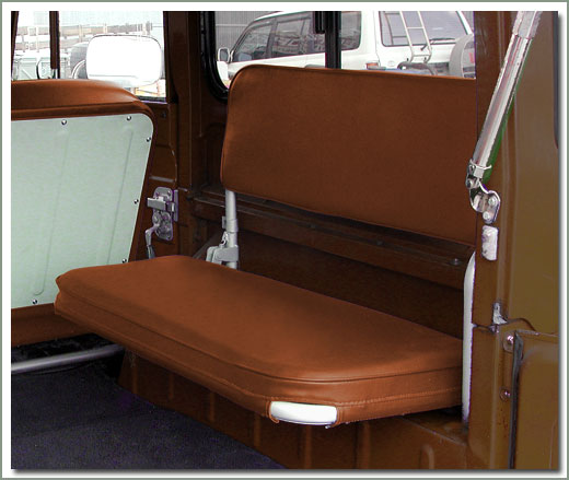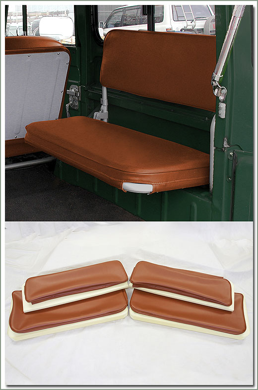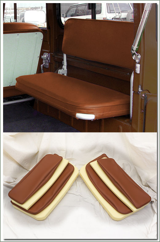 Coral Deluxe SOR Rear Seat Cover & Foam Set Fits 9/72-9/73 FJ40 (with angle cut in front end of seat) rear jump seats-Has fuel separator behind passenger seat-35 1/2 inches by 16 inches - Made with Luxurious Vinyl imported from Europe. Set includes complete Rear Jump Seat upholstery set (4 piece set includes 2 bottom and 2 back covers - also includes 4 piece foam set - order new hardware kits 311-930A separately. On Sale - Everyone gets the Discounted Price on this part. |
