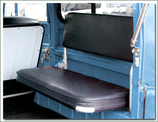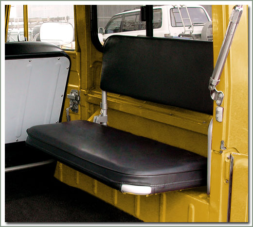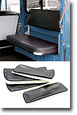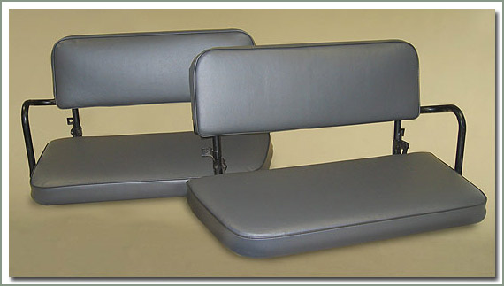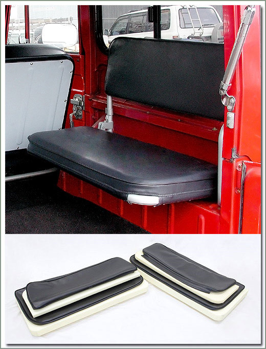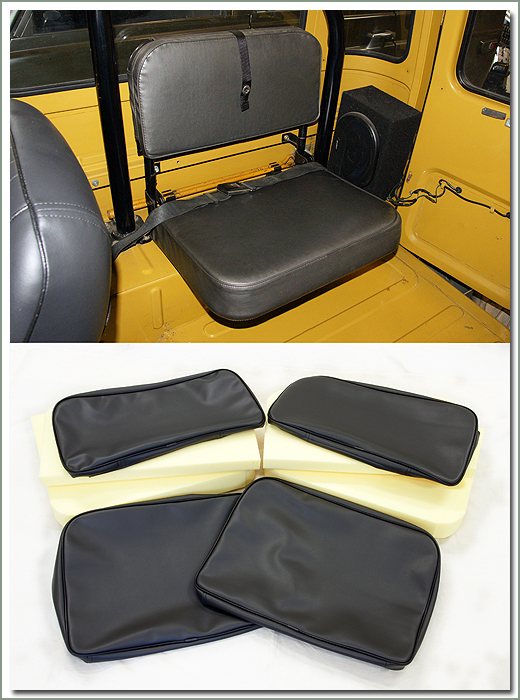 Upgrade and renew your factory rear seats to look like new with SOR's Deluxe Vinyl Rear Jump Seat Covers. These restoration quality seat covers are sewn to factory patterns using OEM dimensions. Made of high quality marine grade Naugahyde vinyl to match your factory interior. Sewn with durable nylon thread, top stitched with matching finished welted seams. SOR's Deluxe Vinyl Rear Jump Seat Covers are made to fit like a glove, tailored to fit your year and model. Manufactured by Specter so you know they fit! Available for all years, and models, even Non-USA Land Cruisers. 1958-1978 models are available in Dark Charcoal Gray Marine vinyl, and 1979-1984 models are available in Light Charcoal Gray Marine vinyl to match your factory interior. Seat covers are sold in complete sets for both rear jump seats, two bottoms and two backs. Remember, your upholstery will only be as good as the base you have to work with, most likely your foam is as old as the worn upholstery you are replacing. New foam padding will greatly improve the comfort and support of your ride. SOR's upholstery sets are designed to fit properly with new foams installed so the new seat covers have a snug, tailored fit. If you use your old worn foams the new seat covers may be loose. Be sure to read information on SOR's high density foam padding. So do the job right, replace the seat foams, paint the seat frames, paint the metal back panels and replace the hardware on the metal back panels. You will be impressed how nice your finished upholstered seats look. Increase the value of your Cruiser and restore your interior to look like brand new.