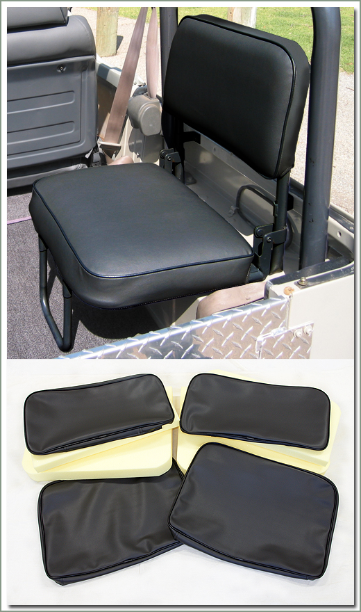 Upgrade and renew your factory rear seats to look like new with SOR's Deluxe Vinyl Rear Non-USA Jump Seat Covers. Need an instruction sheet? Click here |