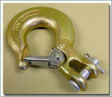 Clevis Hook Attaches with a clevis pin and cotter attachment for use on 5/16 inch Grade 40 or 70 cable - Slip hook includes a spring loaded latch - Made in USA |