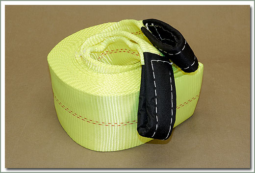 Tow Straps are designed to free stuck vehicles and tow heavy loads. This Nylon Tow Straps is stronger and safer than a chain. Nylon Tow Straps stretches under load, eliminating the abrupt yanking motion on non-stretch straps or chain. Light weight and easy to store. This is standard equipment for all off roaders. Available in two sizes. The 20,000 lb is 2 inches by 30 feet. The 40,000 lb strap is 4 inches by 30 feet. |