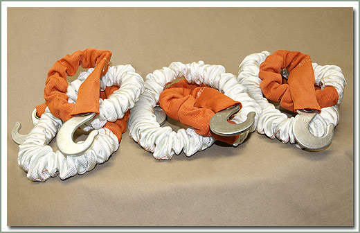 Set of 3 Hashi Rope 3T Light weight tow rope. Tensile strength 6,600 Lbs. This light duty tow rope is about 4 feet long when not in use and about 11 1/2 feet long under load with hooks at both ends. Great to tow a quad. We have seen customers use these as super bungee cords to tie things down in a roof rack. Buy several, lots of uses! Buy them in sets of 3 & save big time! On Sale - Everyone gets the Discounted Price on this part. |