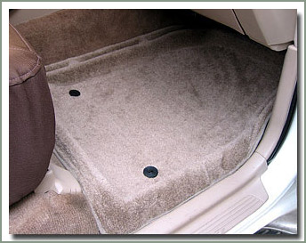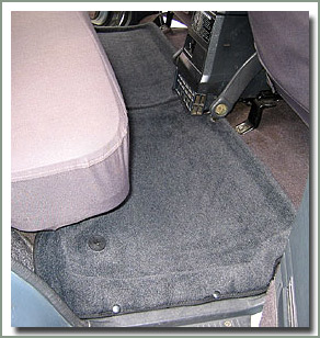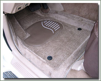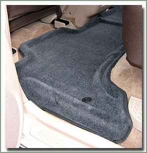 Securely positioned with carpet lock screws and side lock clips along the door sills. These will not move around under your feet while driving. Made of automotive grade plush cut pile carpet, heat molded to fit your specific vehicle.