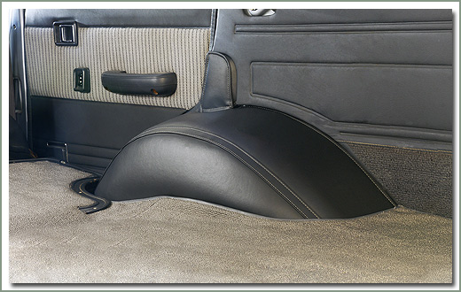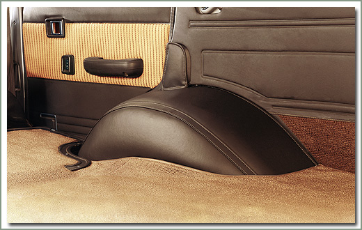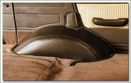Specter's 60 & 62 Series wheel arches are a great looking replacement alternative over the factory OEM wheel arches.These SOR wheel arches are made of high quality marine grade, foam backed vinyl and plush carpet, trimmed and double top stitching for an attractive finished appearance. Available in matching interior colors dark brown and charcoal gray. Affordable alternative to the factory wheel arches - see page #114-131 & 114-132 for comparisons. Sold in pairs. Fits 8/80-1/90 60 and 62 Series. Depending on your year and model you may also need to order the trim piece for the area at the top of the wheel well where electrical wires come out. Some vehicles have this on one side, some vehicles have this on both sides, you will have to look at your vehicle and order accordingly. Please see photo. These trim pieces are sold individually for the right and the left side. Available in dark brown and charcoal gray. Available in your factory interior color Gray (GY), or Brown (BR). |