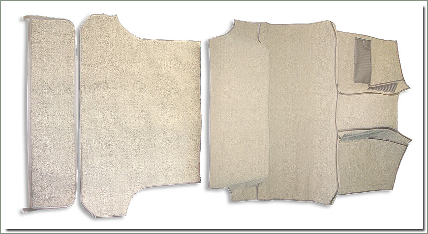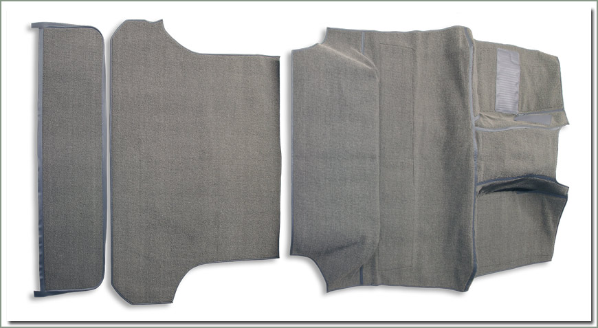 Upgrade your interior with high quality better than original carpet set. This product is made in the USA by SOR not for SOR, so we control the quality all the way down the production line. Our Premium Carpet Sets are tailored to fit your factory floorboards. Our Premium Carpet Set is made of top quality automotive grade loop pile carpeting. If that's not enough, we added a second layer in areas where it counts. This second layer is non-skid coated ¼ inch thick, dense felt padding sewn into the foot wells, cargo areas and tailgate panel. Lock stitched to the top layer with color coordinated binding, providing a "lay flat" wrinkle free installation not like other carpet sets on the market. The inherent weight, stability, and slip resistance of its two layer design eliminates the need for snaps or glue and adds increased sound and heat insulation. Regardless of other manufacturer's claims, this is the highest quality, most complete and detailed carpet set on the market today. Top quality all the way, it's really nice! Compare ours to other manufacturers. A picture is a worth 1000 words. This set covers front, middle, rear cargo area, and tailgate carpet. Designed to fit with our felt padding set see #343-809. Tailgate carpeting is included in the set but can also be purchased separate see part #343-813. If you need the tailgate attachment panel, purchase separately see part #343-815. Complete your interior floor space with a set of SOR Wheel Arches #343-820 available in matching colors. |