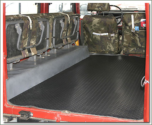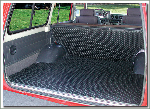 Rear Troopy Cargo Liner Fits 1976-1984 FJ45/FJ47/HJ Troopy - SOR Tuff Mats are easily cut using scissors or a utility knife - Black Tuff Tread - Made from a commercial grade vinyl product with a diamond plate pattern molded into it - Meets the flammability requirements for Motor Vehicle Safety Standards On Sale - Everyone gets the Discounted Price on this part. |