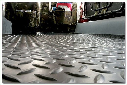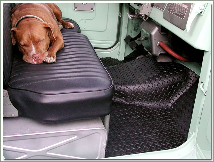 Tuff Liners are a unique one piece floor mat for your FJ40 and FJ45 Cruiser. SOR Tuff Liners are made from a commercial grade vinyl product that has exceptional wear characteristics with a cool diamond plate pattern molded into it. It has good resistance to normal oils, usual household cleansers and common industrial chemicals. This material also meets the flammability requirements for Motor Vehicle Safety Standards. Minor trimming required for shifter holes. There is also a matching SOR Tuff Cargo Liner. Rear cargo liner is not cut out for factory rear heater. Available in Black Tuff Tread material.
