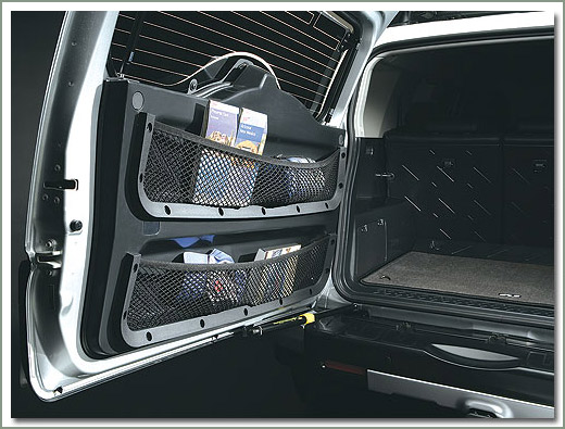 Attaches to the rear door to provide additional storage for smaller items such as maps, flashlights, first aid kits, etc. Sold each. Picture shown with two rear door storage nets installed. |
