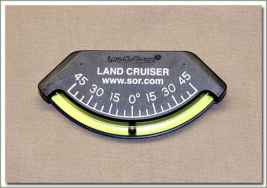 SOR Lev-O-Gage mounted on the dash shows how far your vehicle is leaning one side or the other. Mount a SOR Lev-O-Gage on your door to determine the angle of an uphill or downhill trail. Comes with self adhesive mount. It is 3.5 inches wide. |